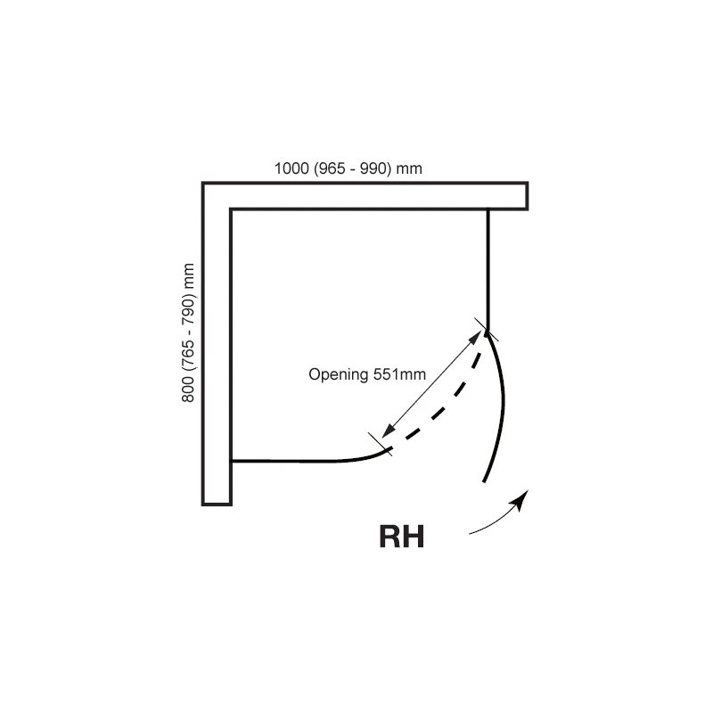 * 1000 x 800mm designer offset quadrant tray RH APTR9-1080Q-R-FR