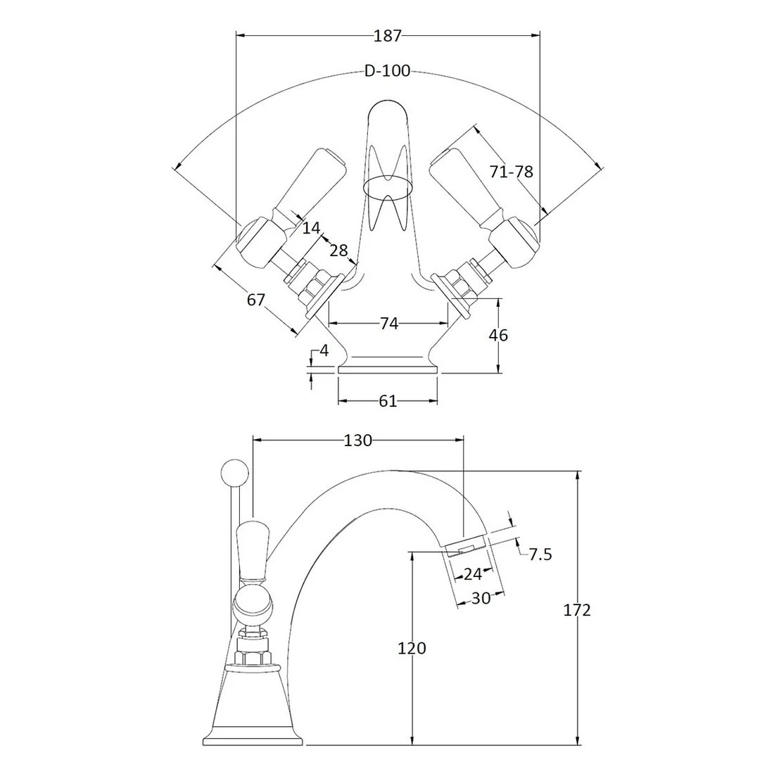 Bayswater White Mono Basin Mixer with Lever & Hex Collar