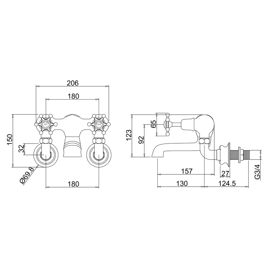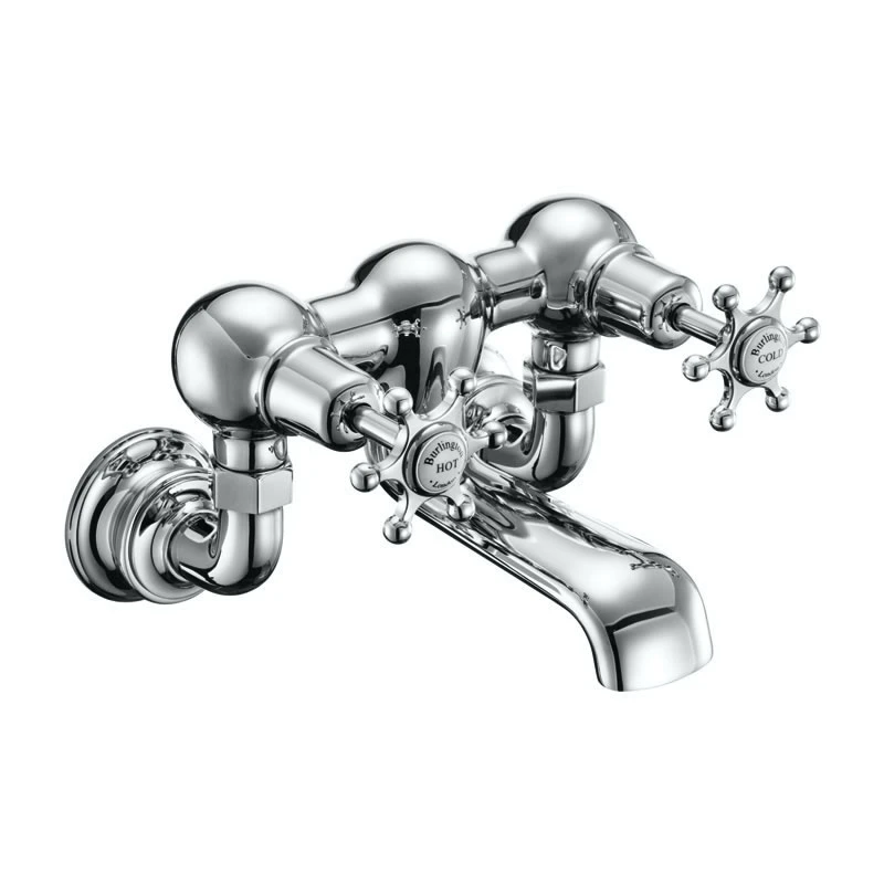 Consists of 1 x Bath filler (excluding tap heads, bases and unions) (T10), 1 x Wall mounting unions (for Bath Shower Mixer & Bath Filler, 3/4) (T17-2), 1 x Birkenhead tap handle (pair) (T3) and 1 x Regent large pair of tap bases (for bath taps, bath shower mixers & bath fillers – pair) (T4A)
