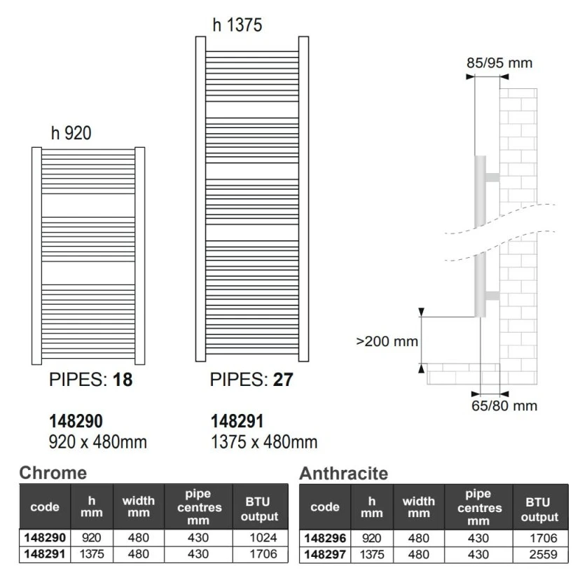 Pipe centres 430mm