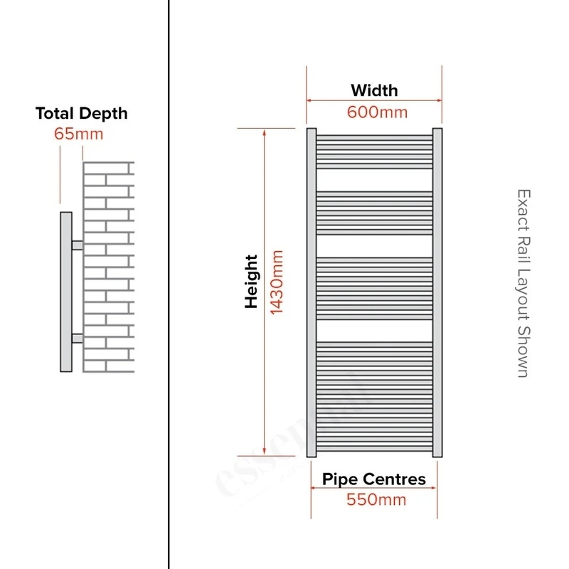 Pipe Centres: 550mm