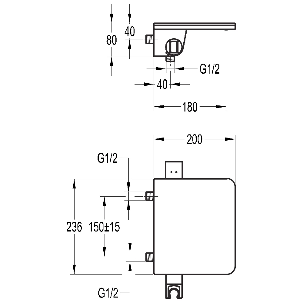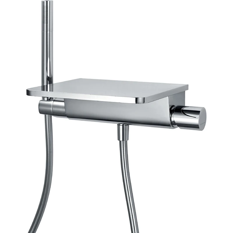Annecy wall mounted single lever bath and shower mixer tap with chrome shelf, handset and hose