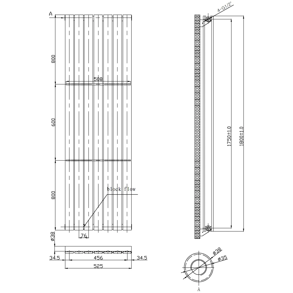 Width 525mm, Height 1800mm