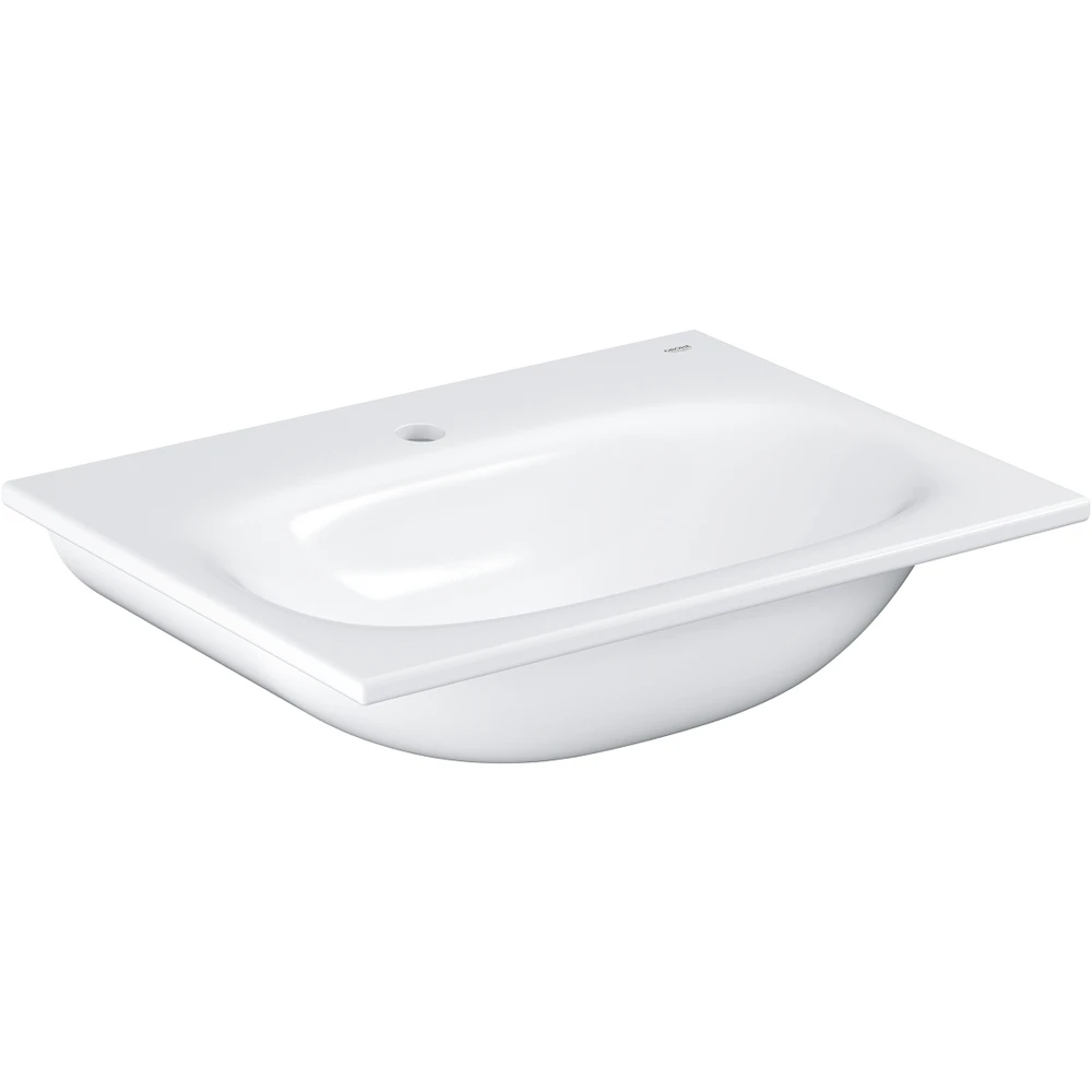 With dimensions of 600mm x 460mm, this Grohe Essence Ceramic wash basin is perfect for vanity units with its sleek 17mm rim. It has 1 hole punched and a smart waste tucked away on the tap-facing side for a slimline aesthetic. In brilliant Alpine White, the ceramic surface has been improved by the addition of the technologically advanced Grohe PureGuard finish for better hygiene and simple maintenance: it repels limescale while anti-bacterial ions stop the development of bacteria.