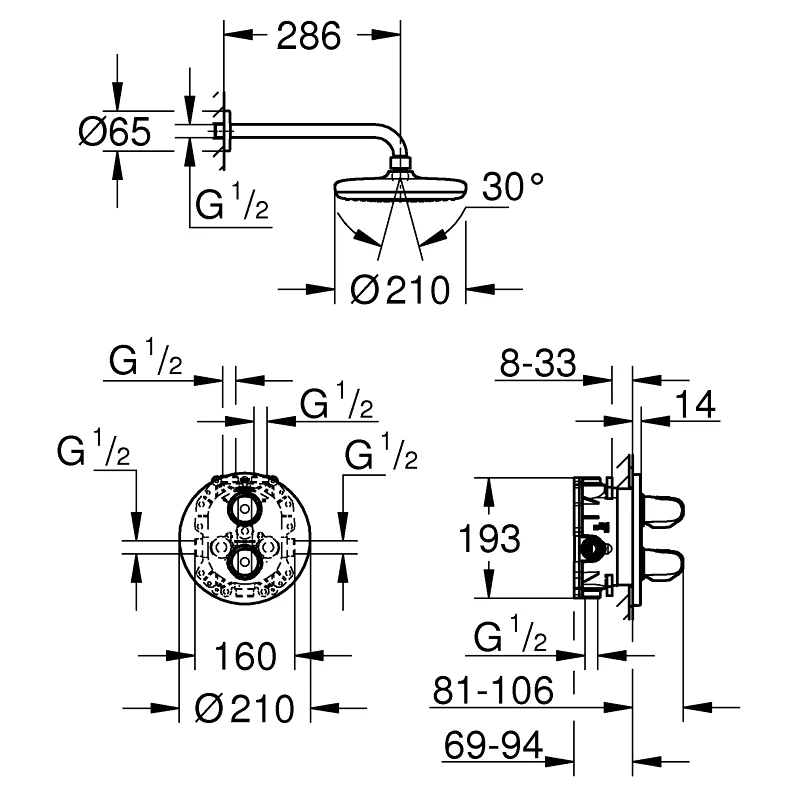 Grohtherm 1000 set for final installation with Aquadimmer Eco (19985)