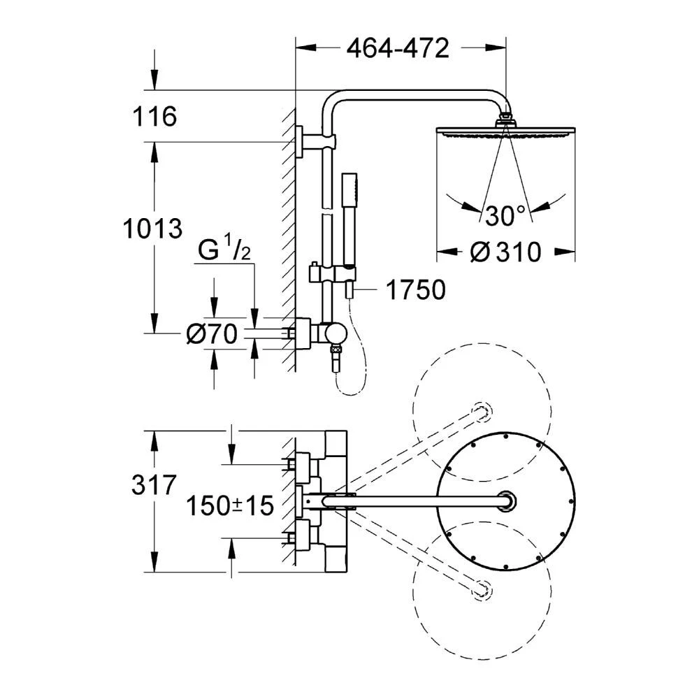 Rainshower System 310 Shower system with thermostat for wall mounting