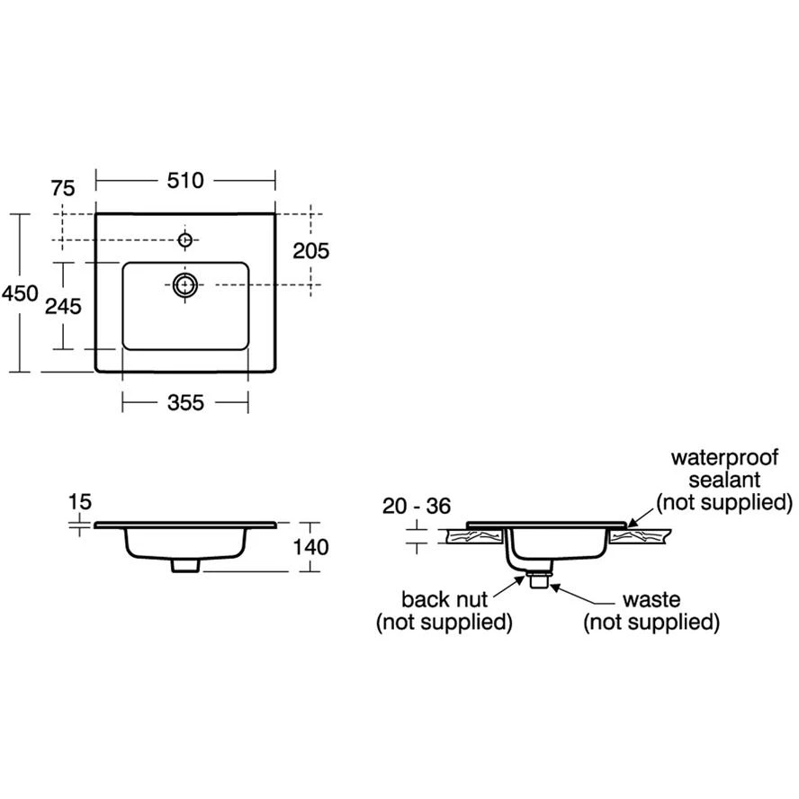 * Tempo 50cm Vanity furniture washbasin, with overflow – one taphole