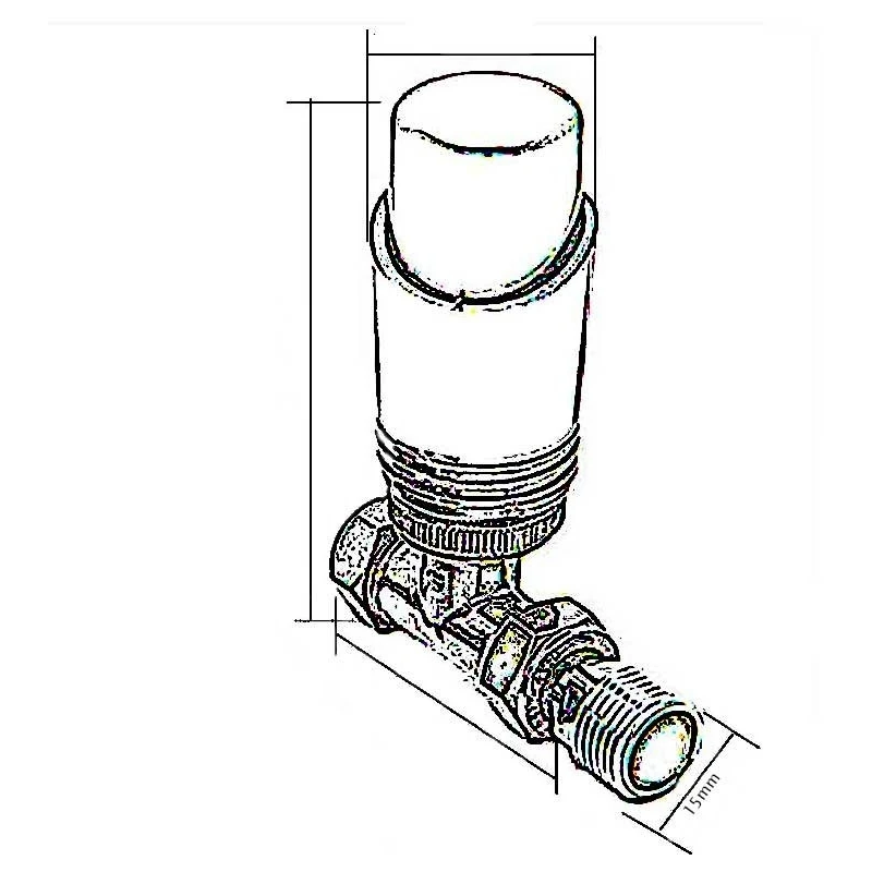 15mm Thermostatic Angled TRV with metal head Lockshield valve