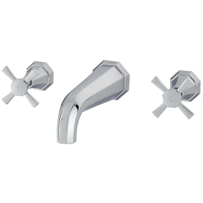 Deco Three-Hole Wall-Mounted Basin Mixer with Crosstop Handles