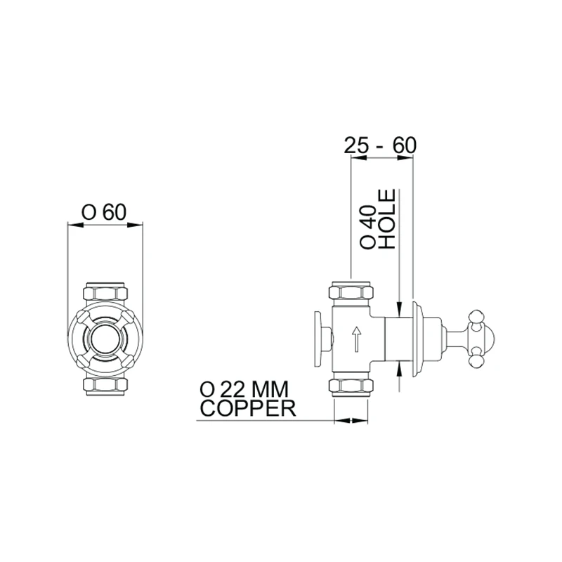 Georgian 3/4″ Concealed Wall Valve with Cross Handle, Chrome
