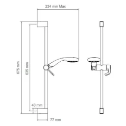 • Chrome plated shower head with integral strainer, flow regulator and with adjustable spray angle option