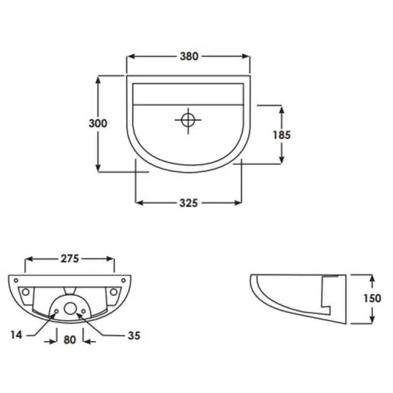 RAK Compact 38cm Special Needs Horizontal Outlet Basin, No Tap Hole