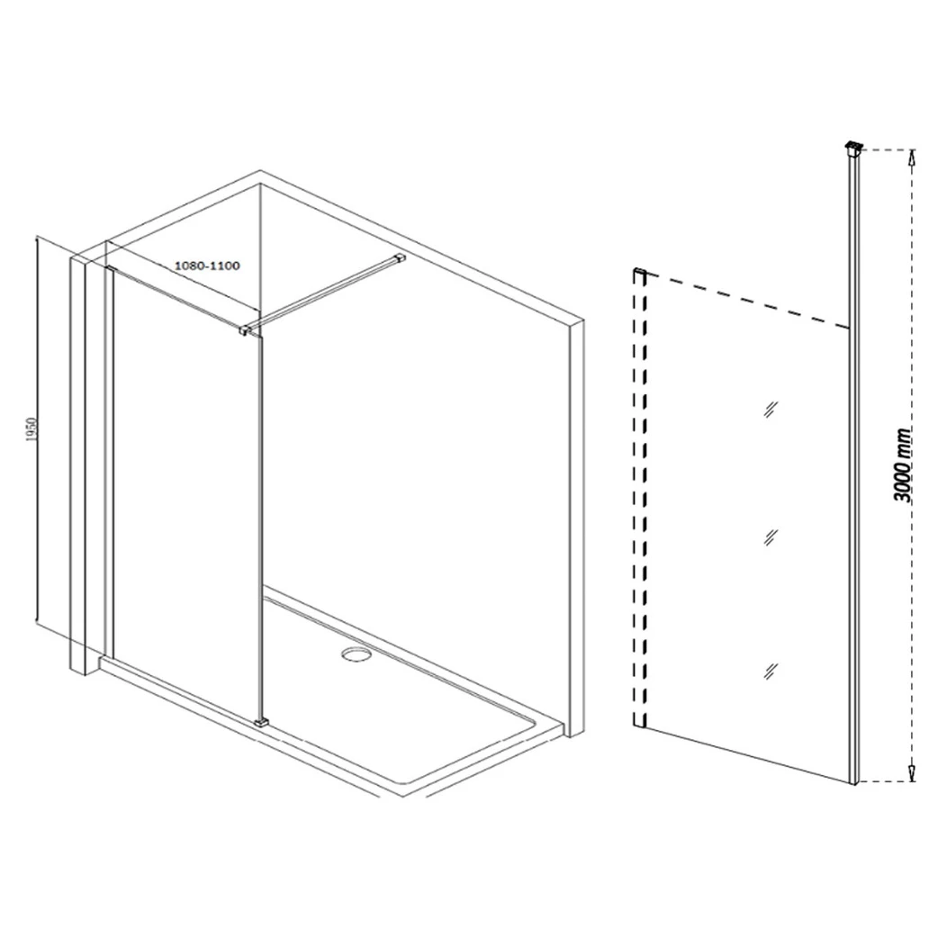 Refresh Wesley Wetroom Panel & Floor-to-Ceiling Pole – 1100mm