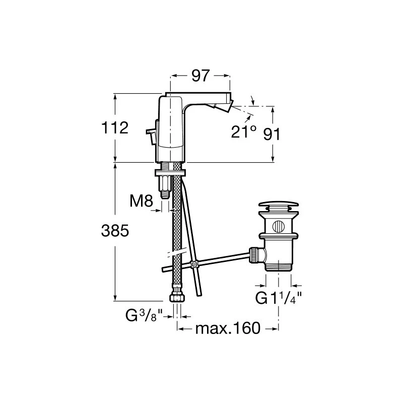 L90 Bidet mixer, integrated lateral handle, with pop-up waste